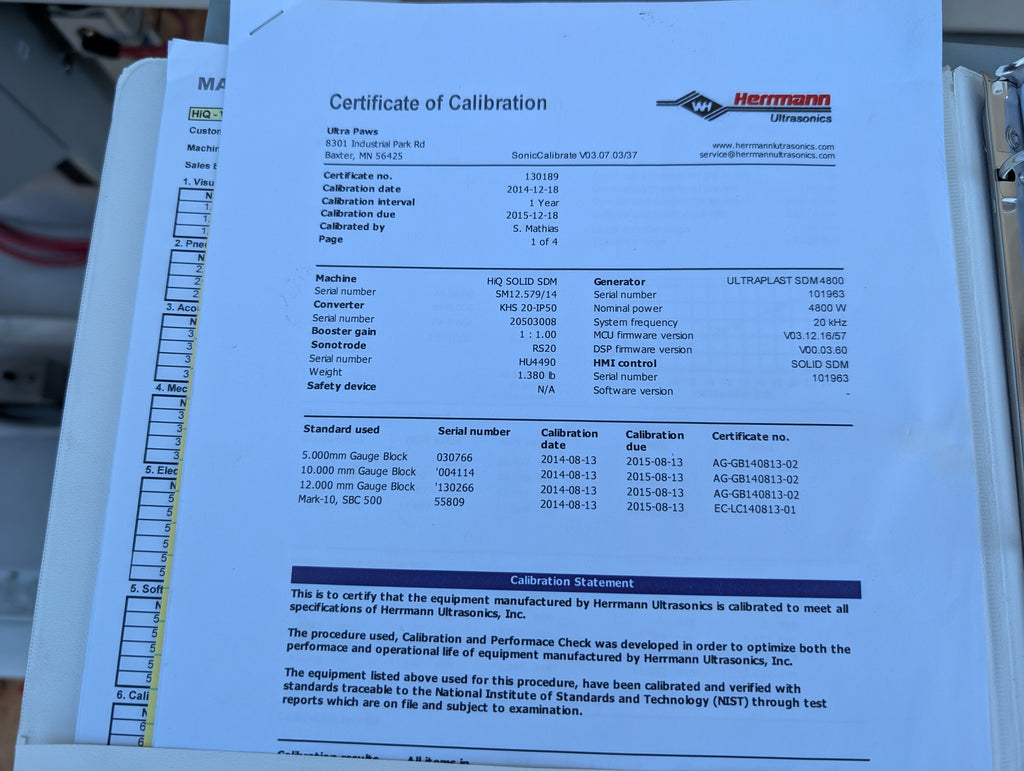 2014 Herrmann HiQ Solid UltraPlast SDM 4800 Ultrasonic Welder 20 kHz 4800W